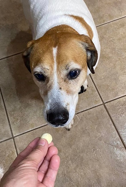 “Stormy weather = stressed out dogs at my house. Rex says ‘Thank you Chompers CBD for the calming treats!’”