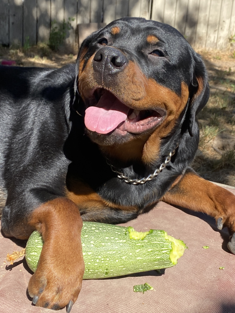 “Our 'baby' Zeus is a (still growing) 110lb Rottweiler we rescued from a backyard breeder. He’s currently living like the king he is with his dog and cat siblings. He starts every day with excitement and a Chompers CBD dog treat just for being the best boy ever.”